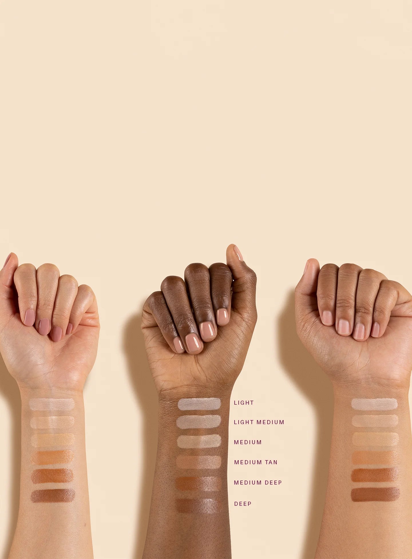 A super lightweight liquid that instantly brightens, hydrates, and awakens undereyes with sheer to medium coverage for a fresh, radiant look in a flash.
