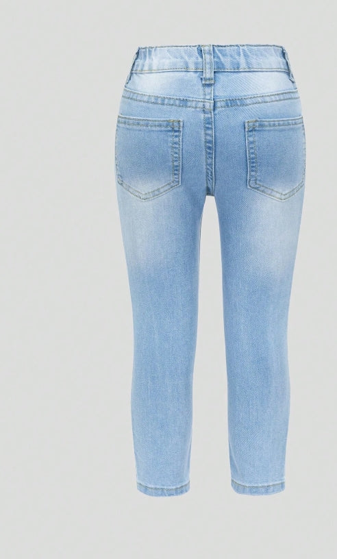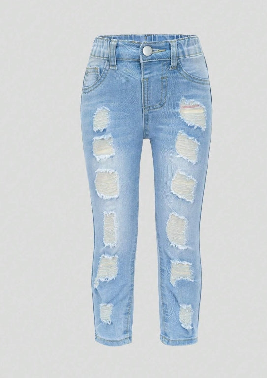 Young Girl Faded Wash Blue Ripped Denim Jeans (7Y)