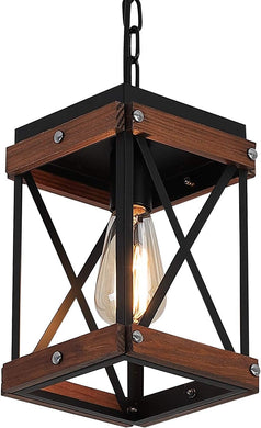 Lighting Rustic Farmhouse Pendant Light with Wood and Metal Cage