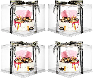 4 Pcs Clear Cake Box with Ribbon